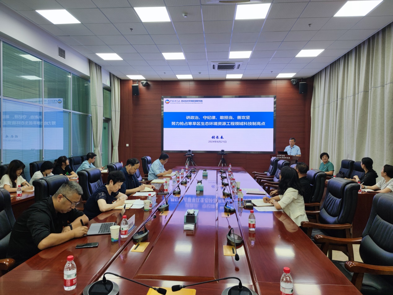 會議傳達(dá)學(xué)習(xí)了習(xí)近平總書記關(guān)于全面加強(qiáng)黨的紀(jì)律建設(shè)的重要論述和中央黨的建設(shè)工作領(lǐng)導(dǎo)小組有關(guān)文件精神。張長春以《講政治?守紀(jì)律?敢擔(dān)當(dāng)?善攻堅?努力搶占寒旱區(qū)生態(tài)環(huán)境資源工程領(lǐng)域科技制高點》為題作了黨課報告,結(jié)合單位實際,從深入學(xué)習(xí)領(lǐng)會習(xí)近平總書記重要指示批示精神和中國科學(xué)院黨組工作安排、推進(jìn)內(nèi)部治理體系和治理能力現(xiàn)代化、大力弘揚科學(xué)家精神、推進(jìn)黨建與科研工作深度融合等方面對搶占科技制高點提出了思考和建議。