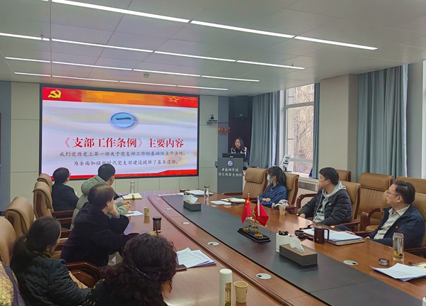黨委辦公室副主任翟睿英領學《中國科學院基層黨支部“強功能 固堡壘 促攻堅”行動方案》,并作了題為《中國共產黨支部工作條例(試行)解讀及黨支部工作實務》報告,向大家詳細介紹了支部工作條例的主要內容,重點對發(fā)展黨員工作、黨費收繳使用和管理方面作了細致解讀,為各黨支部更好的學習領會、貫徹運用《條例》提供了指導。