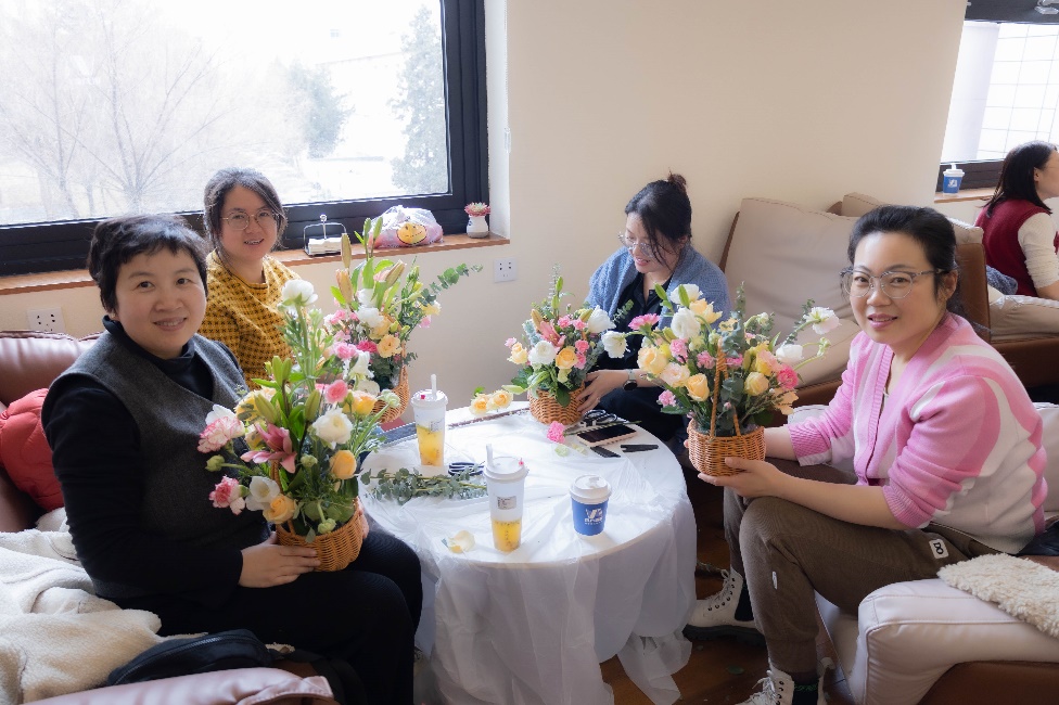 下午的手工制作活動(dòng)受到了蘭州惠州兩地女職工和學(xué)生的共同的歡迎和支持。在蘭州南昌路園區(qū),專業(yè)花藝師現(xiàn)場(chǎng)講解插花基礎(chǔ)知識(shí)與技巧,大家親手創(chuàng)作出獨(dú)具匠心的花藝作品,感受藝術(shù)帶來(lái)的愉悅與放松。在惠州河橋園區(qū),專業(yè)布藝?yán)蠋煬F(xiàn)場(chǎng)指導(dǎo)大家制作口金包。參與者通過(guò)一針一線體驗(yàn)傳統(tǒng)手工藝的魅力。兩地活動(dòng)現(xiàn)場(chǎng)溫馨融洽,歡聲笑語(yǔ)不斷,充分展現(xiàn)了女職工和學(xué)生的創(chuàng)意與活力。