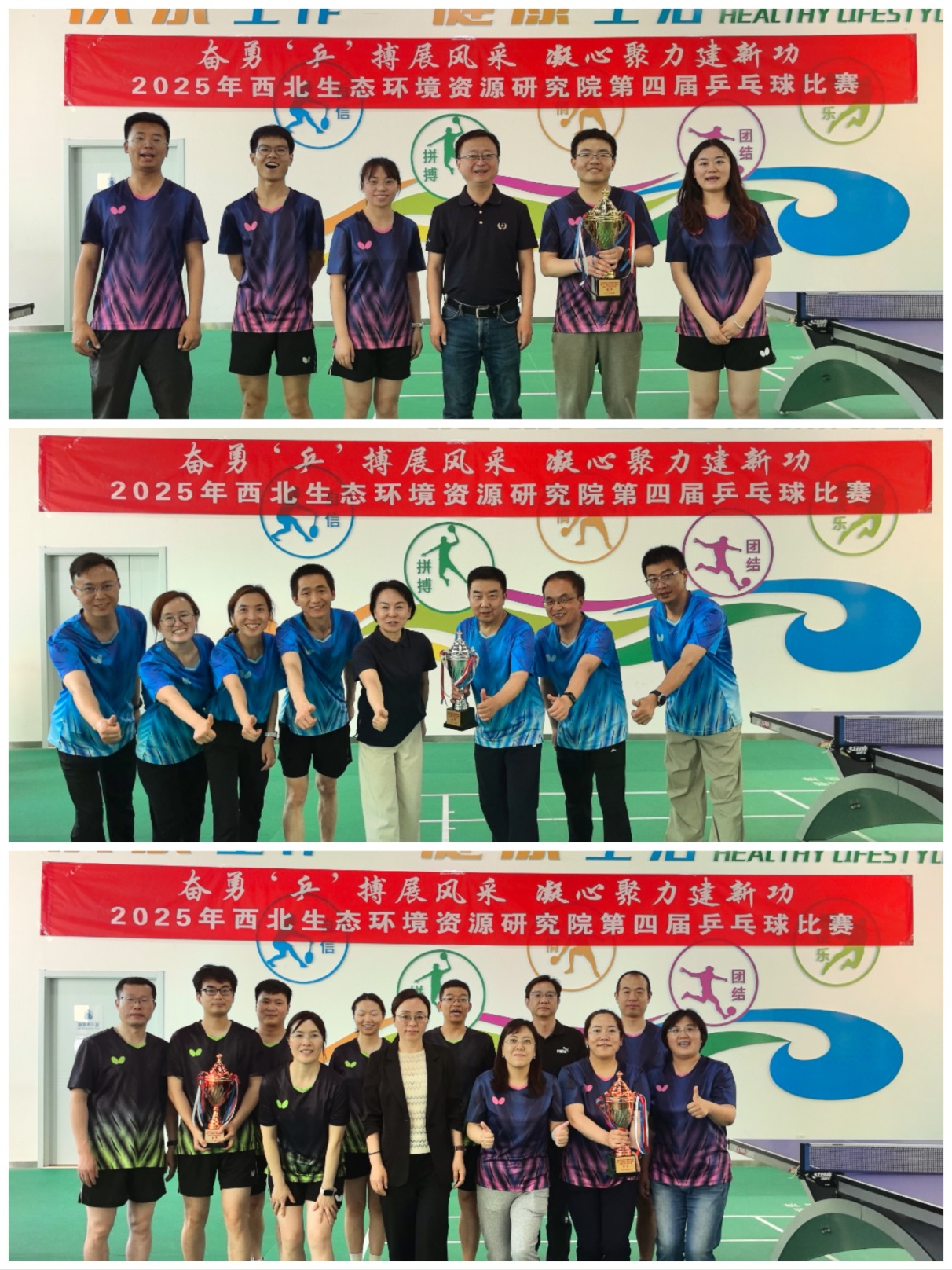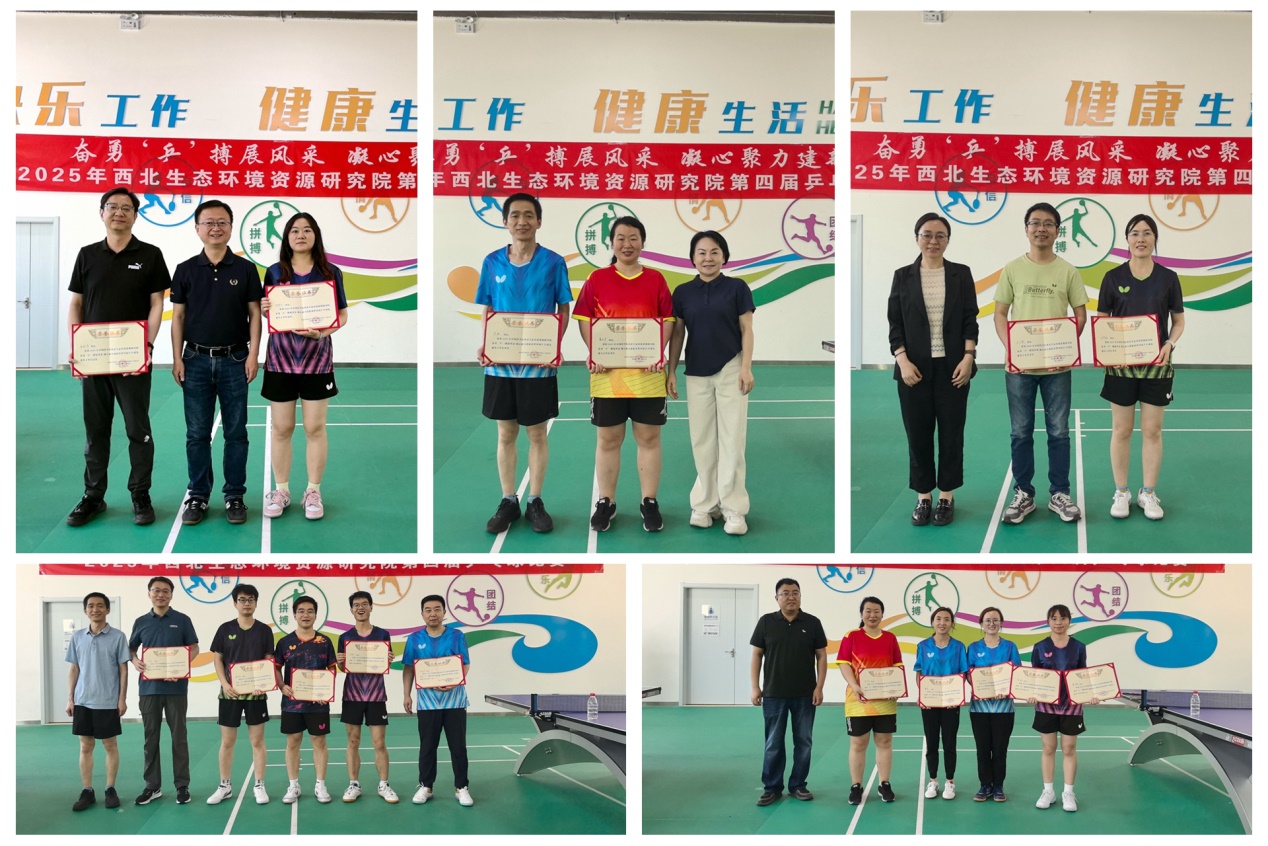 經(jīng)過緊張激烈的角逐,最終沙漠與沙漠化研究室代表隊獲得冠軍,文獻(xiàn)情報中心代表隊獲得亞軍,凍土與寒區(qū)工程研究室代表隊和管理部門代表隊獲得季軍。張明峰、朱強(qiáng)、王少影獲男子單打冠亞季軍,鄧雅文、董麗蘋、尤哲敏獲女子單打冠亞季軍。