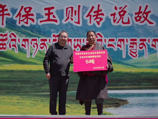 活動首日,幫扶團(tuán)隊(duì)與白玉鄉(xiāng)政府舉行科技幫扶啟動儀式。海北站站長張振華研究員代表團(tuán)隊(duì)向白玉鄉(xiāng)人民政府交接“高原生態(tài)和資源產(chǎn)業(yè)技術(shù)服務(wù)站”牌匾。該服務(wù)站的建立,標(biāo)志著白玉鄉(xiāng)擁有了集技術(shù)咨詢、成果轉(zhuǎn)化和人才培養(yǎng)于一體的常態(tài)化科技支撐平臺,為當(dāng)?shù)厣鷳B(tài)保護(hù)與產(chǎn)業(yè)發(fā)展提供長效智力支持。民盟青海省委副主委、西北高原所李玉林研究員向?qū)趲头龅哪裂虼寰栀?噸優(yōu)質(zhì)顆粒飼料,為緩解當(dāng)?shù)啬撩裨陉P(guān)鍵生產(chǎn)時(shí)節(jié)面臨的飼料短缺困難提供幫助。