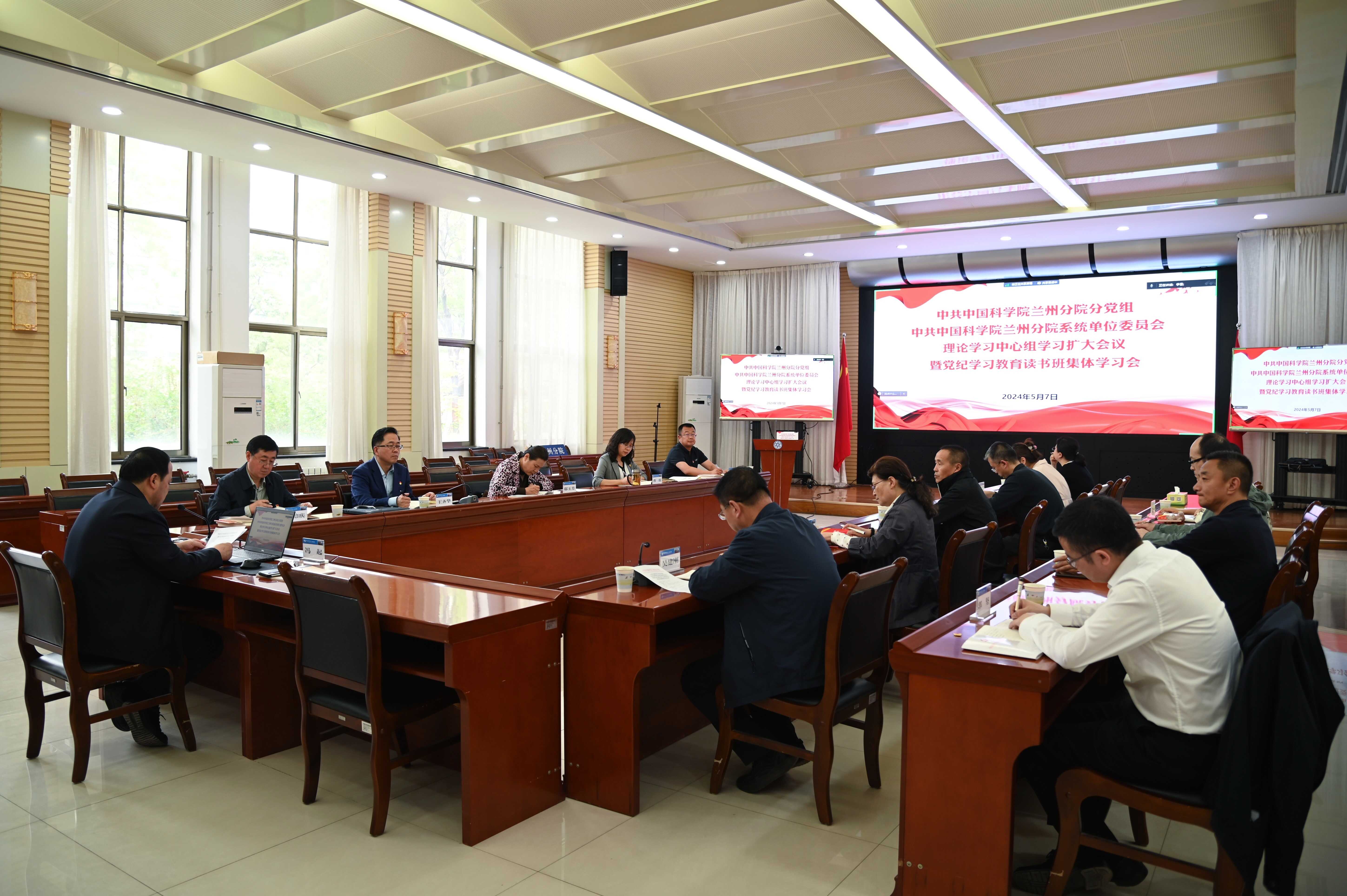5月7日下午,中共中國科學(xué)院蘭州分院分黨組召開2024年第5次理論學(xué)習(xí)中心組學(xué)習(xí)擴(kuò)大會(huì)議暨黨紀(jì)學(xué)習(xí)教育讀書班集體學(xué)習(xí)會(huì)議。會(huì)議由蘭州分院分黨組書記、院長馮起主持。分黨組領(lǐng)導(dǎo)班子成員,系統(tǒng)單位黨委委員,機(jī)關(guān)黨委委員、高級(jí)業(yè)務(wù)主管四級(jí)職員、各部門負(fù)責(zé)人參加會(huì)議。