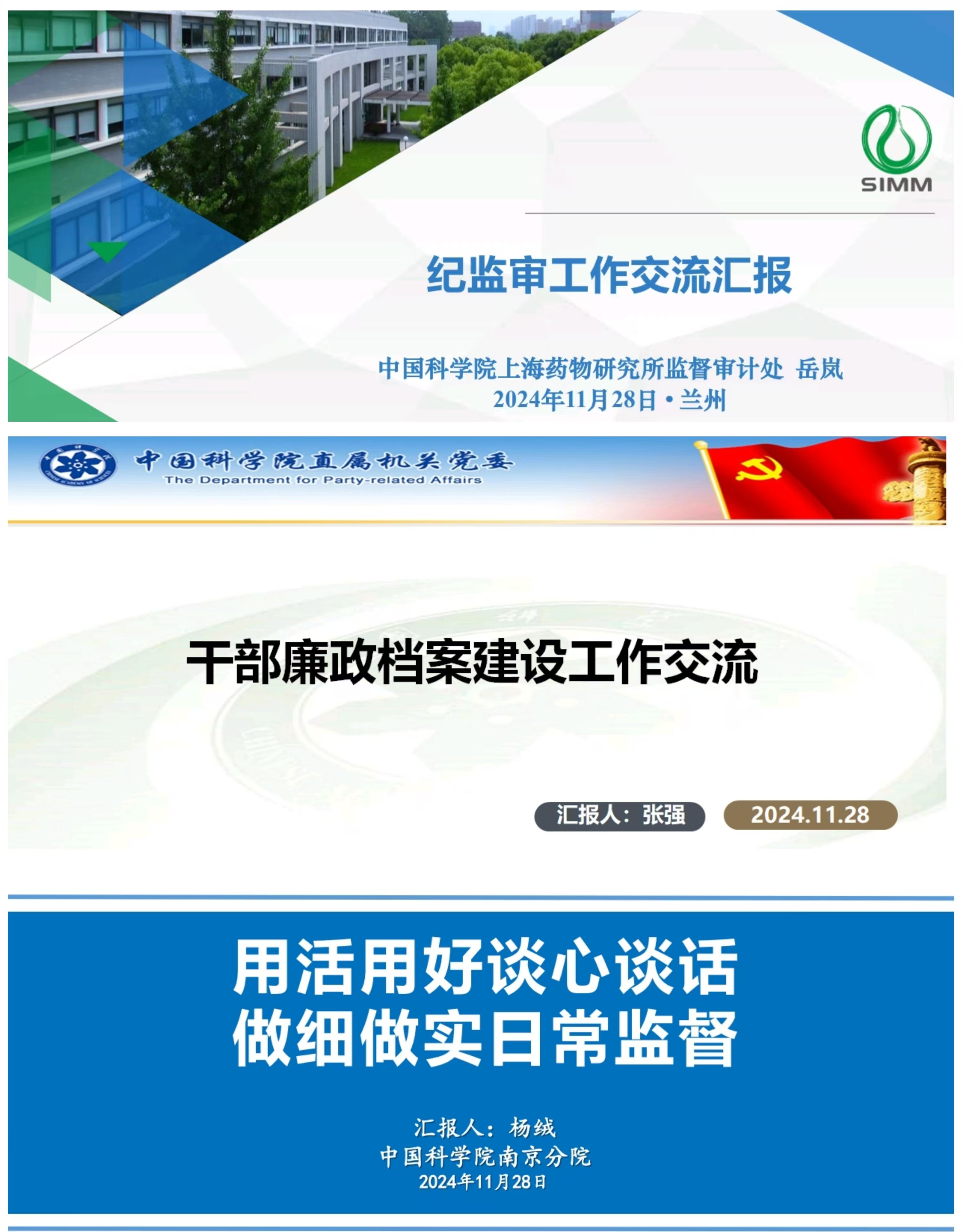 為進一步加強黨員監(jiān)督管理,落實落細廉政風險防控,中國科學院直屬機關紀委紀檢工作部張強重點講述了“干部廉政檔案建設”工作經(jīng)驗;南京分院紀檢辦主任楊絨作題為《用活用好談心談話 做細做實日常監(jiān)督》專題報告;上海藥物所紀委副書記、監(jiān)審處處長岳嵐就研究所紀監(jiān)審工作實務作分享交流。此外,參訓學員還集中觀看了典型違紀違法行為警示教育視頻資料。