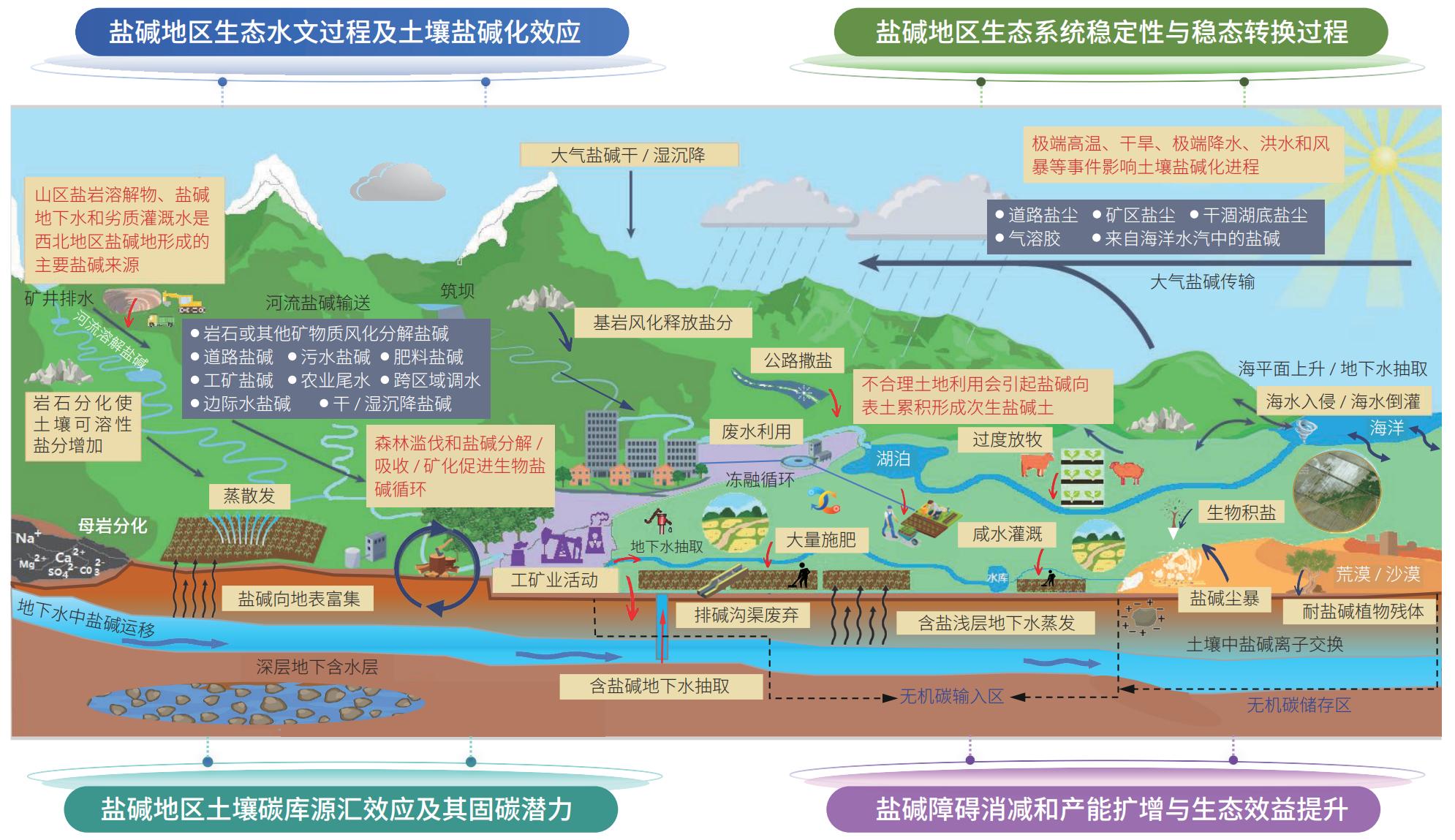 中國(guó)工程院院士馮起團(tuán)隊(duì)基于多年西北地區(qū)生態(tài)環(huán)境保護(hù)、資源開發(fā)利用的研究與實(shí)踐,系統(tǒng)梳理了西北地區(qū)鹽堿地資源數(shù)量、分布規(guī)律和潛力狀況,以及鹽堿地變化趨勢(shì)、鹽堿化演變過程和改良治理成效,分析了統(tǒng)籌推進(jìn)西北地區(qū)鹽堿地綜合治理利用面臨的問題與挑戰(zhàn),凝練了未來西北地區(qū)鹽堿地與土壤鹽堿化研究的重點(diǎn)方向與關(guān)鍵科學(xué)問題,提出了統(tǒng)籌推進(jìn)西北地區(qū)鹽堿地綜合治理利用的相關(guān)對(duì)策與建議。