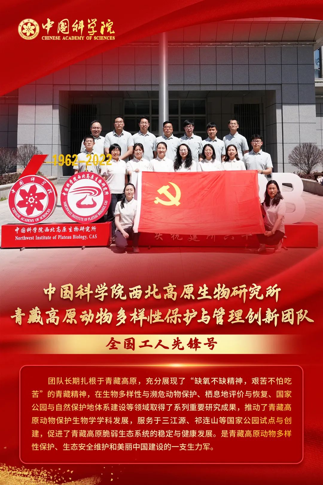西北高原所青藏高原動物多樣性保護與管理創(chuàng)新團隊榮獲全國工人先鋒號榮譽稱號