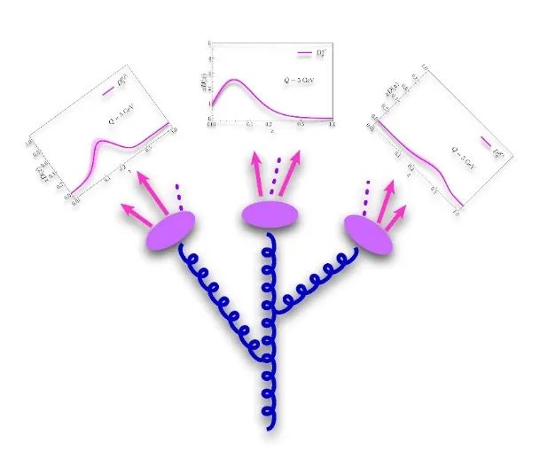 NPC合作組建立了全新的全局分析框架,采用了最新的高精度微擾計算,成功從正負(fù)電子對撞實驗、半單舉深度非彈性散射實驗以及質(zhì)子-質(zhì)子對撞實驗數(shù)據(jù)中提取了不同味道夸克、膠子和一系列帶電強(qiáng)子的碎裂函數(shù),并極大提升了膠子碎裂函數(shù)的精度。