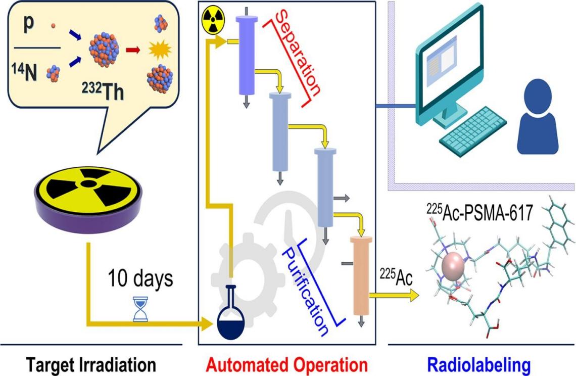 鐳-223(半衰期為11.4天)和錒-225(半衰期為10天)作為兩種極具潛力的阿爾法發(fā)射同位素,由于其獨(dú)特的物理化學(xué)性質(zhì),在小體積腫瘤和多位點(diǎn)轉(zhuǎn)移性癌癥的治療中展現(xiàn)出廣泛的應(yīng)用前景。然而,傳統(tǒng)的鐳-223和錒-225生產(chǎn)方法復(fù)雜且效率不高,難以滿足日益增長(zhǎng)的需求,迫切需要開發(fā)出一種高效且自動(dòng)化的制備系統(tǒng)。