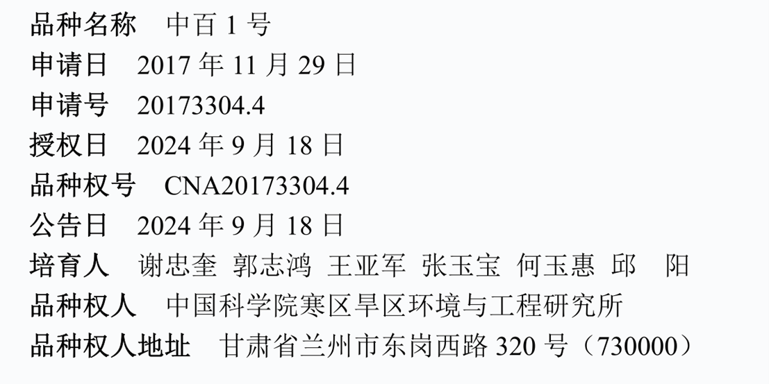 近日,中國(guó)科學(xué)院西北生態(tài)環(huán)境資源研究院蘭州生態(tài)農(nóng)業(yè)試驗(yàn)研究站(簡(jiǎn)稱(chēng)“蘭州農(nóng)業(yè)站”)謝忠奎研究員團(tuán)隊(duì)自主選育的“中百1號(hào)”蘭州百合新品種上榜農(nóng)業(yè)農(nóng)村部2024年第826號(hào)授予植物新品種權(quán)名單。這是我國(guó)首個(gè)被授予植物新品種權(quán)的優(yōu)質(zhì)高產(chǎn)食用百合品種,同時(shí)也是西北研究院首次獲植物品種權(quán)授權(quán)。