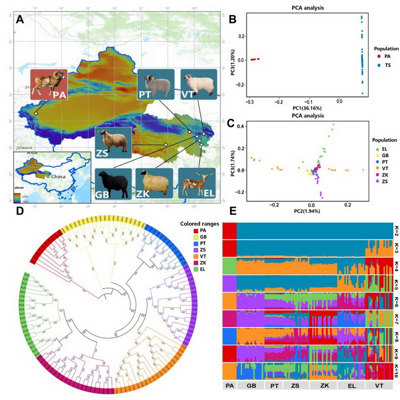 藏羊(Tibetan?sheep)是青藏高原地區(qū)重要經濟動物,因其耐寒冷、耐低氧和抗病力強等高原適應特性,為高原地區(qū)農牧業(yè)經濟發(fā)展提供了重要支持。經過長期的環(huán)境適應和人工選擇,藏羊在青藏高原獨特的自然條件下已經馴化出十多個品種,其中青海省內的主要品種包括高原型藏羊、山谷型藏羊、歐拉型藏羊、貴南黑裘皮羊、扎什加羊和澤庫羊。然而,到目前關于藏羊的遺傳多樣性與馴化機制的研究還不夠深入。?