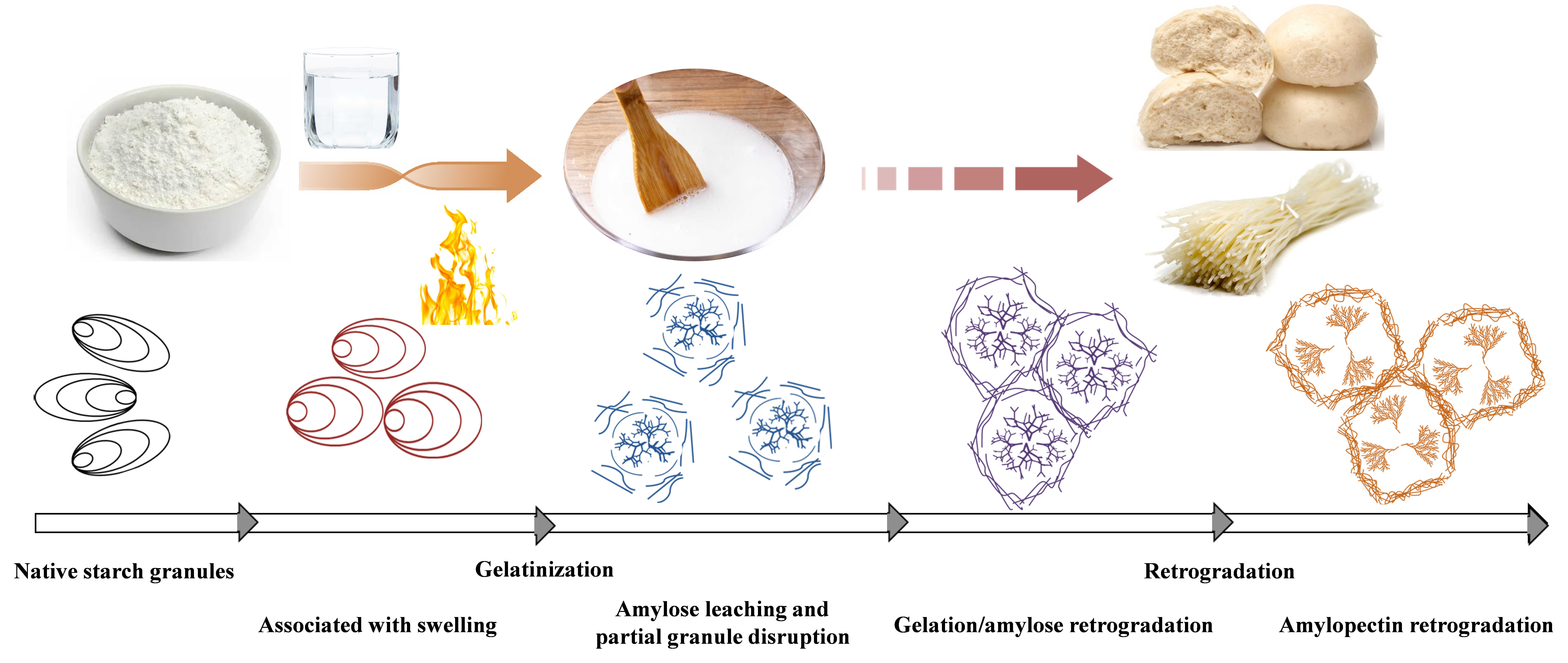 近日,中國(guó)科學(xué)院蘭州化學(xué)物理研究所天然藥物與化學(xué)測(cè)量研究中心食品化學(xué)與安全檢測(cè)團(tuán)隊(duì)在抑制淀粉回生方面發(fā)表相關(guān)綜述文章。全面總結(jié)了影響淀粉回生的關(guān)鍵因素,包括淀粉的來(lái)源、組成、糊化程度、水分含量、儲(chǔ)存溫度和時(shí)間等。研究指出,不同來(lái)源的淀粉由于其化學(xué)組成和結(jié)構(gòu)差異,回生行為存在顯著不同。