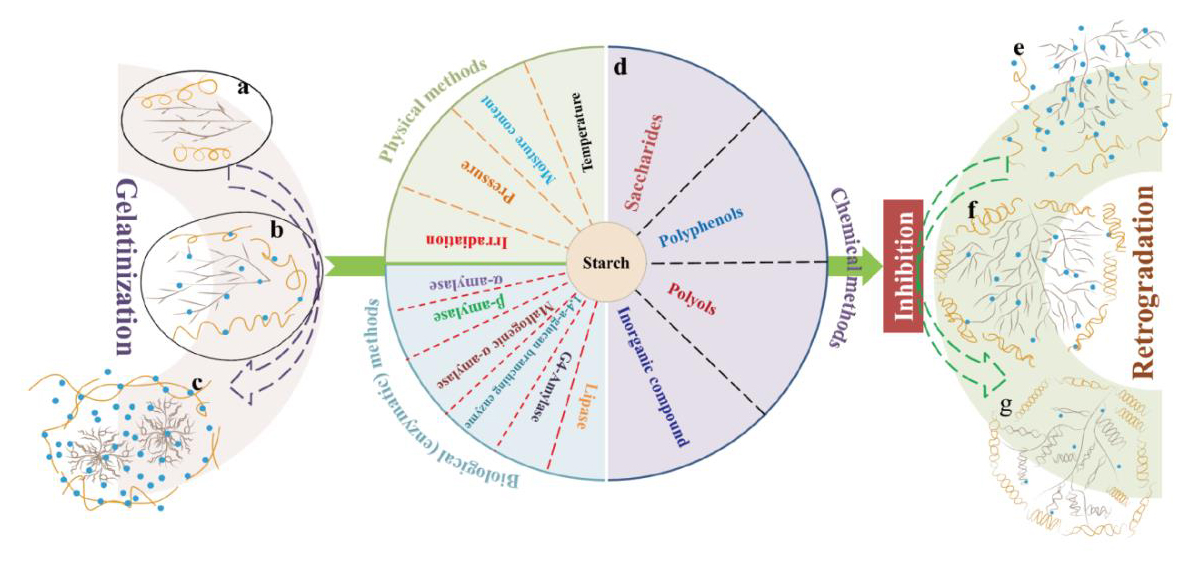 相關(guān)研究工作以“Inhibition of starch retrogradation: Advances in physical,chemical,and biological methods”為題發(fā)表在International Journal of Biological Macromolecules(2025,https://doi.org/10.1016/j.ijbiomac.2025.141390)。鄭曉淵助理研究員為該論文第一作者,曾凡逵研究員為通訊作者。