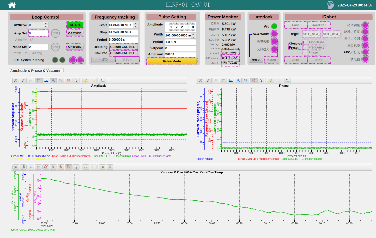 在惠州裝置區(qū)的工程現(xiàn)場,30余名黨員、科研骨干組成的攻堅(jiān)團(tuán)隊(duì)開展多系統(tǒng)聯(lián)合攻關(guān)。團(tuán)隊(duì)針對QWR007超導(dǎo)段首套模組進(jìn)行集成性能測試。測試數(shù)據(jù)顯示,在脈沖和連續(xù)波模式下該模組分別實(shí)現(xiàn)7kW及4kW高功率加載,各項(xiàng)參數(shù)和關(guān)鍵指標(biāo)全面達(dá)標(biāo)。這一成果驗(yàn)證了系統(tǒng)集成功能的可靠性,為日后項(xiàng)目建設(shè)和束流調(diào)試奠定關(guān)鍵技術(shù)基礎(chǔ)。