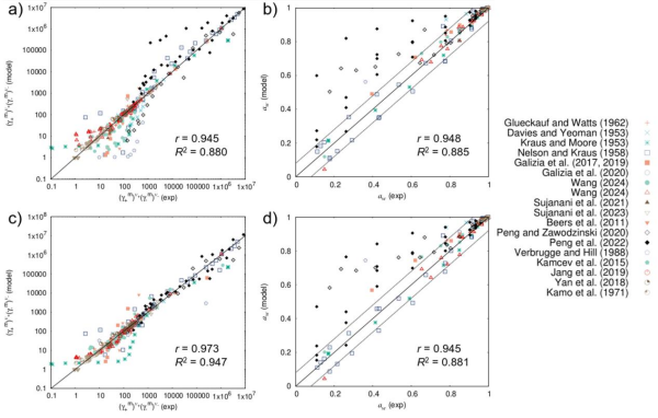 應用該理論,成功對過去70多年來實驗測定的各類離子交換膜體系中離子活度系數數據進行了統(tǒng)一描述。研究特別強調:膜內復雜的聚合物網絡作為拓撲整體對自由離子行為具有決定性作用。(式3)中的標度因子β作為表征膜聚合物整體拓撲結構的關鍵參數,為先進離子交換膜的設計提供了全新理論坐標。