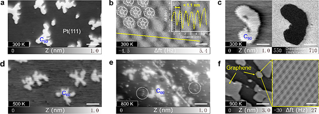 2. nc-AFM表征Pt(111)上C60島的熱演化。