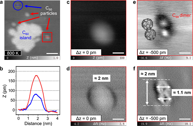 3. nc-AFM表征C60二聚體。