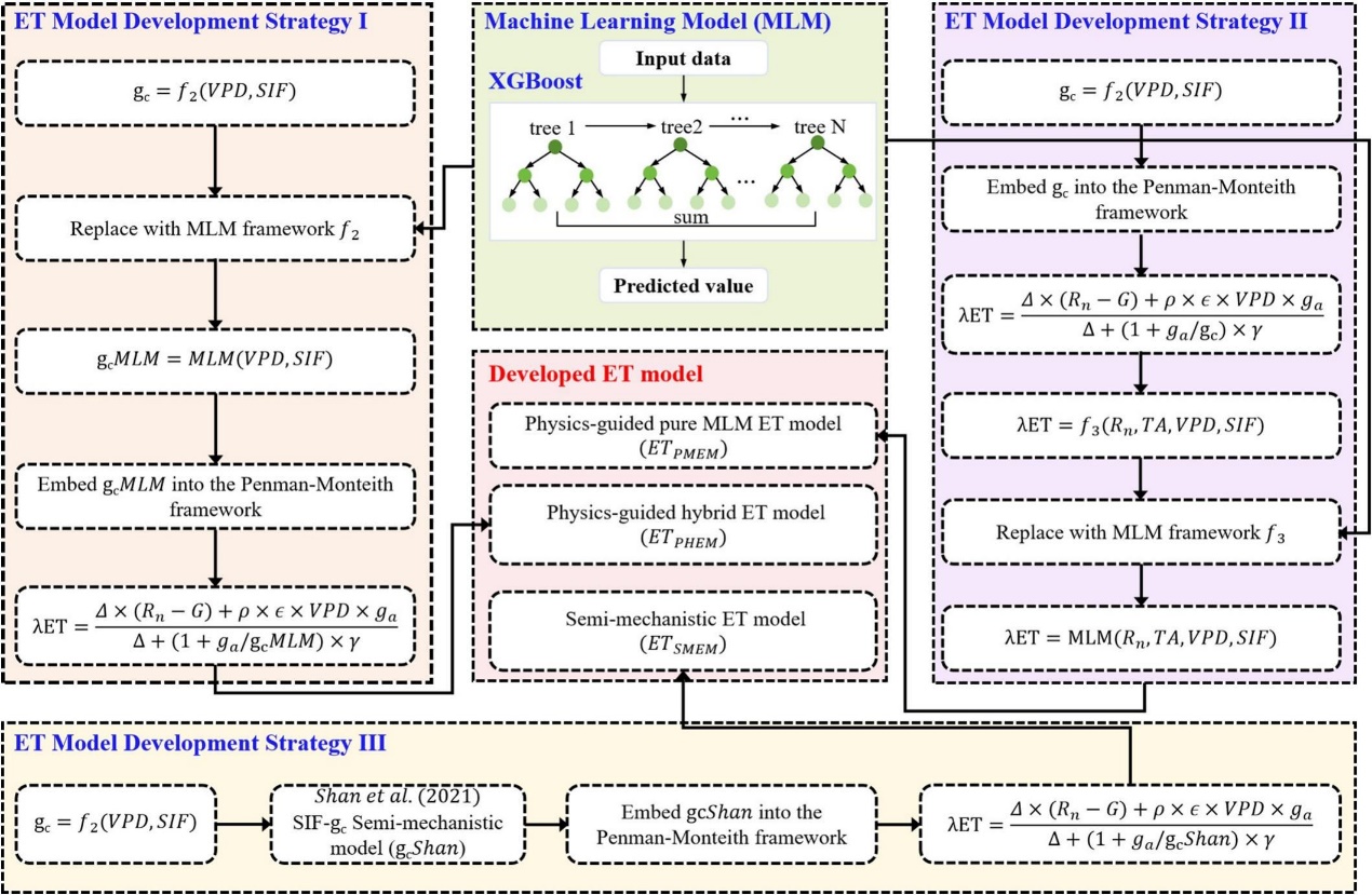 近日,中國科學(xué)院西北生態(tài)環(huán)境資源研究院祁連山冰凍圈與生態(tài)環(huán)境綜合觀測研究站研究團隊構(gòu)建了兩種融合物理約束與機器學(xué)習(xí)方法的SIF驅(qū)動耦合ET模型,即物理引導(dǎo)混合ET模型(ETPHEM)和物理引導(dǎo)純機器學(xué)習(xí)ET模型(ETPMEM)。
