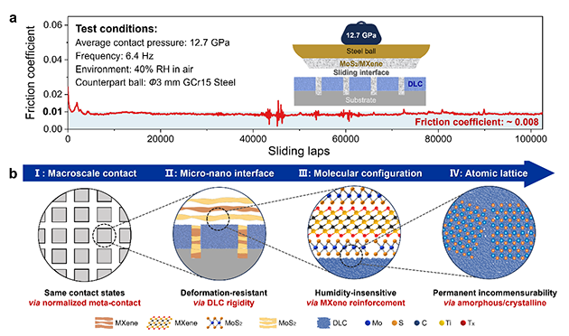 圖3. 工程尺度超潤滑性能及跨尺度結構協(xié)同作用機理