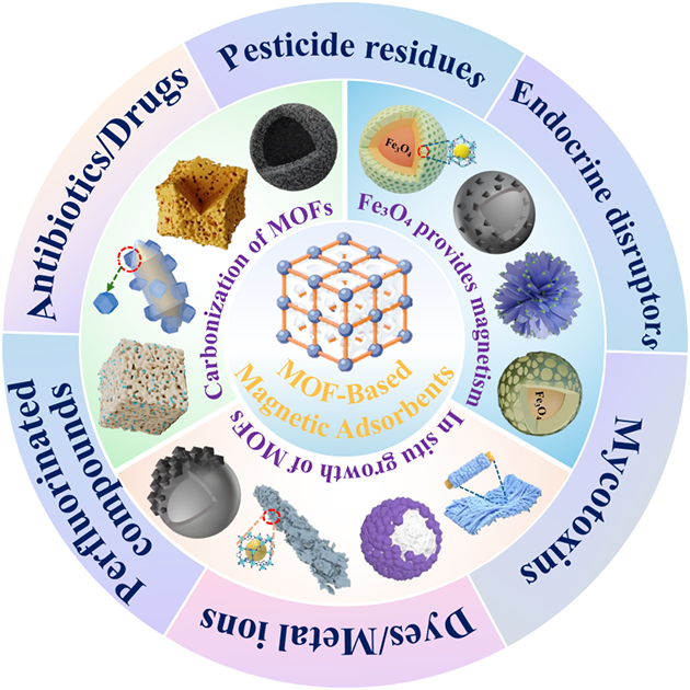 中國(guó)科學(xué)院蘭州化學(xué)物理研究所天然藥物與化學(xué)測(cè)量研究中心色譜材料與分離測(cè)量課題組長(zhǎng)期聚焦西部資源能源復(fù)雜體系分離分析領(lǐng)域的新材料研發(fā)與新方法學(xué)構(gòu)建,研發(fā)出多種功能化有機(jī)框架復(fù)合材料,應(yīng)用于環(huán)境和食品中各類(lèi)污染物的萃取富集與吸附去除研究(Analytica Chimica Acta, 2024, 1287: 342112;Microchimica Acta, 2024, 191(2): 90;Environmental Research, 2025, 264: 120319; ACS Applied Polymer Materials, 2025,7,5737-5746; Separation and Purification Technology, 2026, 394, 137454.),為環(huán)境監(jiān)測(cè)與食品安全評(píng)估提供了重要的技術(shù)支撐?;谠诖判訫OF基吸附材料研究中的積累,發(fā)表了關(guān)于磁性MOF基復(fù)合材料吸附污染物的研究進(jìn)展的綜述文章。
