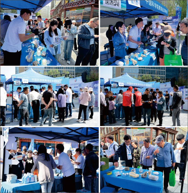 活動現(xiàn)場,28家單位聯(lián)動開展多種類、多元化科普宣傳內(nèi)容,科技感十足的機器人、航天器模型和多種科研儀器吸引著眾多參展觀眾的目光。依托青海鹽湖所成立的青海省鹽湖地質(zhì)與環(huán)境科研科普基地,通過詳細策劃和充分動員年輕科研骨干,精心準備了“青藏高原鹽湖演化、鹽湖成鹽成礦過程、微觀世界中的鹽湖、鹽湖資源高效利用、鹽湖旅游資源、鹽湖與人類生活和最美鹽湖人”等七個宣傳板塊,全面展示了鹽湖科普知識。展臺前觀眾絡(luò)繹不絕,成為本次活動人氣最旺的展臺之一。不同年齡段、不同行業(yè)的參觀群眾通過“看展板、聽講解、摸標本”了解和學(xué)習(xí)鹽湖科普知識,并積極參與“鹽湖知識答題”環(huán)節(jié)。兩個小時的活動中共有154人參與掃碼答題互動,觀眾們不僅獲得了小獎品,也在參觀答題過程中學(xué)習(xí)了鹽湖知識,感受了鹽湖的神奇與美麗。