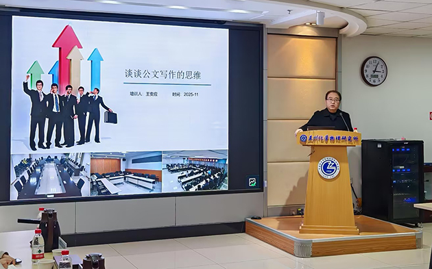 培訓(xùn)邀請?zhí)m州大學(xué)王安應(yīng)老師作了題為“談?wù)劰膶懽鞯乃季S”的專題報(bào)告。他從思維在公文寫作中的作用、公文寫作的底層邏輯和如何正確使用AI工具等方面解析了公文寫作的本質(zhì)規(guī)律,通過典型案例對比,生動(dòng)闡釋了“邏輯清晰、格式規(guī)范、語言得體”在公文寫作中的重要性,為參會(huì)人員打開了公文寫作的新思路。蘭州化物所黨委辦公室(所辦公室)主任尹曉葉和綜合檔案室副主任張磊分別圍繞公文處理常見問題和文書檔案建檔規(guī)范作了主題報(bào)告。