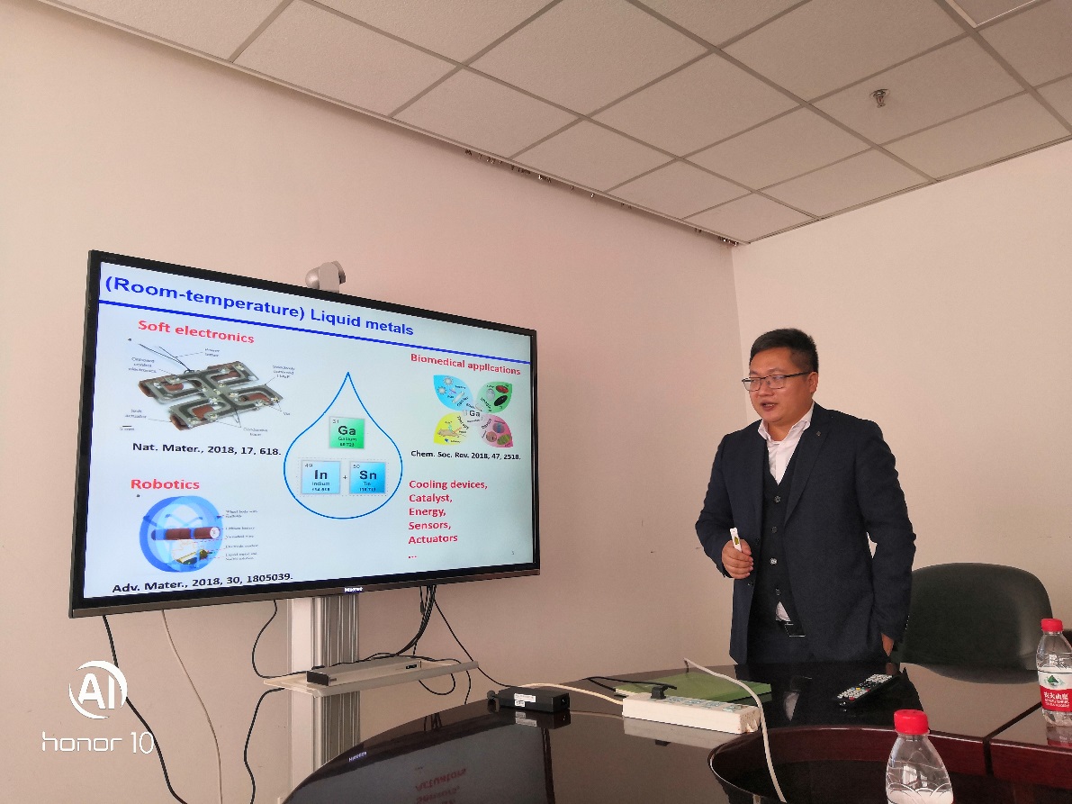 10月19日,深圳大學(xué)周學(xué)昌教授應(yīng)邀到蘭州化物所進(jìn)行學(xué)術(shù)交流,并做了題為“室溫液態(tài)金屬與韌性凝膠:從液滴到柔性電子”的學(xué)術(shù)報告。