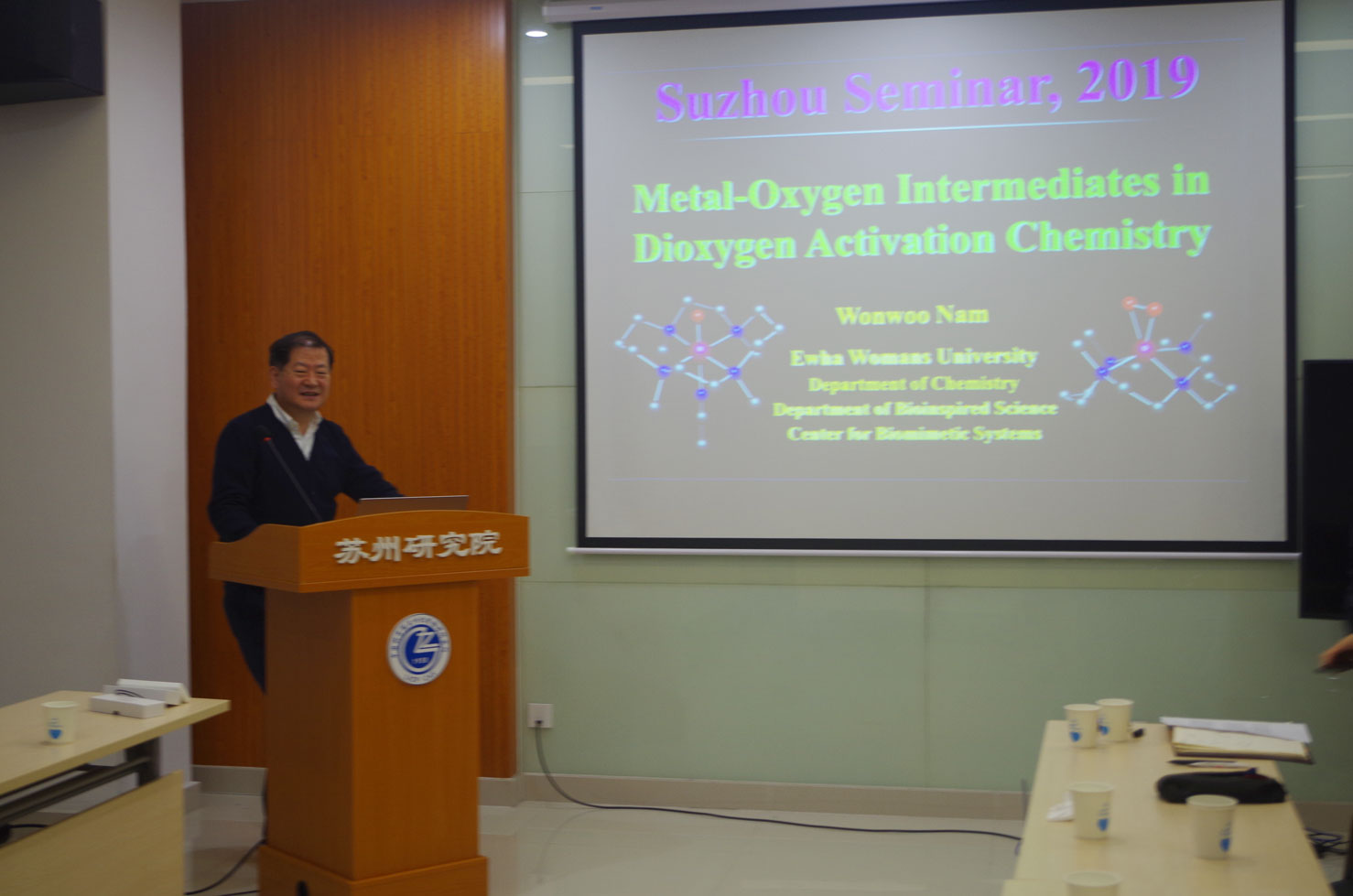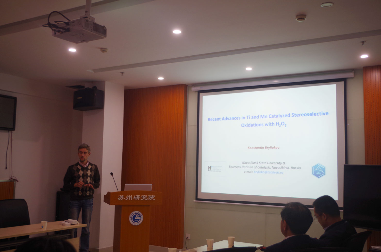 1119日,中國科學院蘭州化學物理研究所羰基合成與選擇氧化國家重點實驗室舉辦仿生化學與催化專題報告會,邀請中國科學院化學研究所張純喜研究員、俄羅斯科學院Boreskov催化研究所Konstantin Bryliakov教授和韓國梨花女子大學Wonwoo Nam教授到蘭州化物所蘇州研究院,分別作了題為Mimicking the Water-Splitting Catalytic Center in PhotosynthesisRecent Advances in Ti and Mn Catalyzed Stereoselective Oxidations with H2O2”和Biomimetic Metal-Oxygen Intermediates in Dioxygen Activation Chemistry的學術報告。