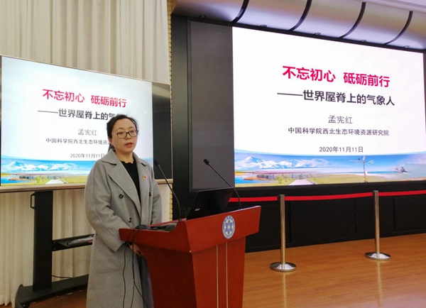 報告會特邀2019 年“中國科學(xué)院年度感動人物”入選者孟憲紅研究員作《不忘初心、砥礪前行——世界屋脊上的氣象人》主題報告。孟憲紅研究員從“懷揣夢想、千里求學(xué)”“情系高原、筑夢大氣”“潛心科研、銳意進(jìn)取”“不忘初心、”砥礪前行四個方面分享了她的求學(xué)、科研經(jīng)歷和感悟。從樸實無華的語言中令人看到她帶領(lǐng)團(tuán)隊始終秉承“特別能吃苦、特別能戰(zhàn)斗、特別能奉獻(xiàn)、特別能團(tuán)結(jié)、特別能忍耐”的“牦牛精神”,面對困難她披荊斬棘、堅守信念,把科學(xué)研究當(dāng)作自己的生命,用勤奮鋪就科研之路,用韌性點(diǎn)燃科研之旅。