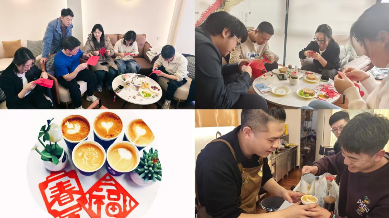 活動(dòng)現(xiàn)場(chǎng),同學(xué)們專注體驗(yàn)剪紙的魅力、興奮展示各自的剪紙成果。現(xiàn)場(chǎng)洋溢著濃厚的節(jié)日氛圍,每一片窗花、每一個(gè)“?!弊?,每一份新年寄語都承載著大家對(duì)新一年的美好期盼。隨后,大家在咖啡師的現(xiàn)場(chǎng)教學(xué)下投入到咖啡拉花制作,感受咖啡制作的樂趣。