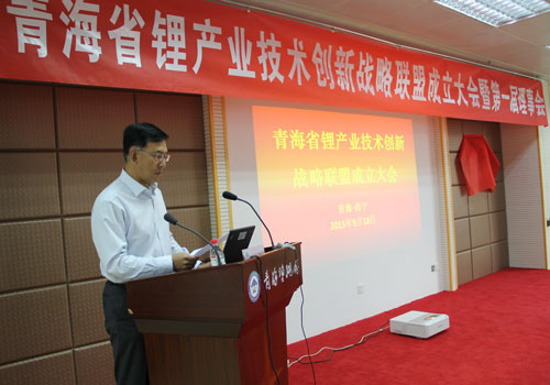 青海省鋰產(chǎn)業(yè)技術(shù)創(chuàng)新戰(zhàn)略聯(lián)盟成立大會(huì)上,青海鹽湖所主持工作的副所長(zhǎng)段東平代表鋰聯(lián)盟籌備組匯報(bào)了聯(lián)盟成立背景及籌備工作情況,青海省科技廳副廳長(zhǎng)張超遠(yuǎn)宣讀了成立青海省鋰產(chǎn)業(yè)技術(shù)創(chuàng)新戰(zhàn)略聯(lián)盟的文件,并與青海省質(zhì)量技術(shù)監(jiān)督局副局長(zhǎng)王穎鳴共同為青海省鋰產(chǎn)業(yè)技術(shù)創(chuàng)新戰(zhàn)略聯(lián)盟揭牌。