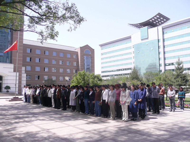 5月19日下午14時28分,隨著防空警報在城市上空的鳴響,我所參加默哀活動的全體人員,在半降的國旗下,面向南方默哀3分鐘,沉痛悼念四川汶川大地震遇難者。 為表達(dá)全國各族人民對四川汶川大地震遇難同胞的深切哀悼,國務(wù)院18日發(fā)布公告,決定2008年5月19日至21日為全國哀悼日。5月19日下午14時28分,中國全國人民為四川汶川大地震遇難者默哀3分鐘,汽車、火車、艦船鳴笛,防空警報鳴響。 全國各地的人們用同一種方式和災(zāi)區(qū)人民心連心,在舉國同悲的時刻,讓我們祝愿地震中的遇難者安息,全國人民將齊心協(xié)力和災(zāi)區(qū)的人民一起抗震救災(zāi),幫助他們早日重建家園。