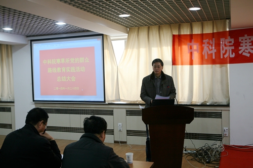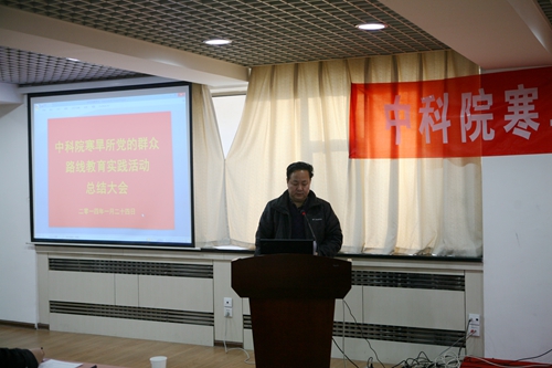 之后,寒旱所黨委書記、副所長呂世華作了寒旱所黨的群眾路線教育實踐活動總結報告。呂世華介紹了寒旱所群眾路線教育實踐活動基本情況、主要做法、取得成效。寒旱所教育實踐活動自2013年7月全面啟動以來,所黨委認真深入學習中央和中科院的精神,按照中央“照鏡子、正衣冠、洗洗澡、治治病”的黨的群眾路線教育實踐活動的總體要求,圍繞中央八項規(guī)定、院“12項要求”和反對“四風”精神,通過學習教育、聽取意見,查擺問題、開展批評,整改落實、建章立制環(huán)節(jié),結合研究所的工作實際, 扎實、有序、高質量地推進了黨的群眾路線教育實踐活動。通過教育實踐活動,進一步堅定了理想信念、明確了創(chuàng)新責任,堅定了“創(chuàng)新為民”宗旨,進一步促進了作風轉變、提升服務能力,強化了“務實求真”作風,進一步加強了科研管理和廉潔從業(yè)風險防控體系建設,強化了制度建設,初步形成踐行黨的群眾路線的長效機制